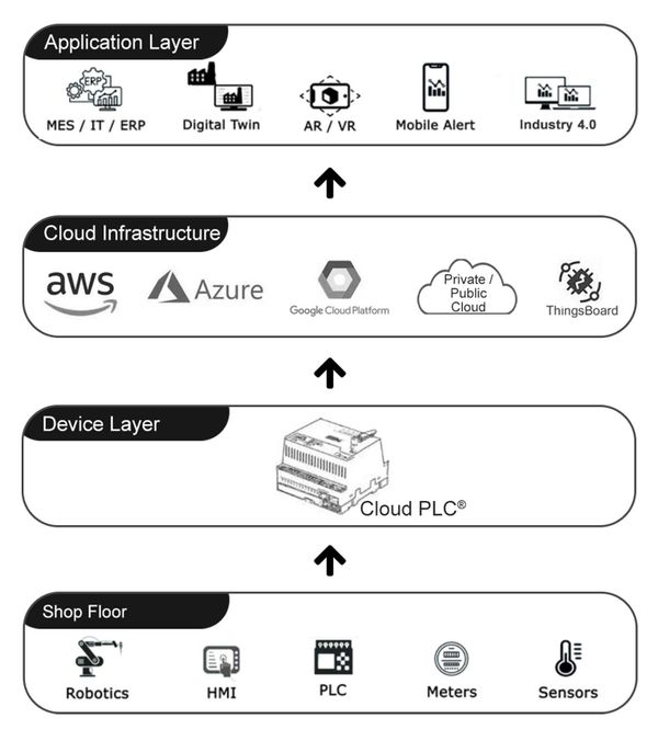Cloud PLC® 4.0 can used to build the custom industrial solution for monitoring and controlling PLC and SCADA, HMI, VFD, Motors, servo, Valves, energy meter, actuators, relays, encoder, RFID and fingerprint readers and industrial sensors.